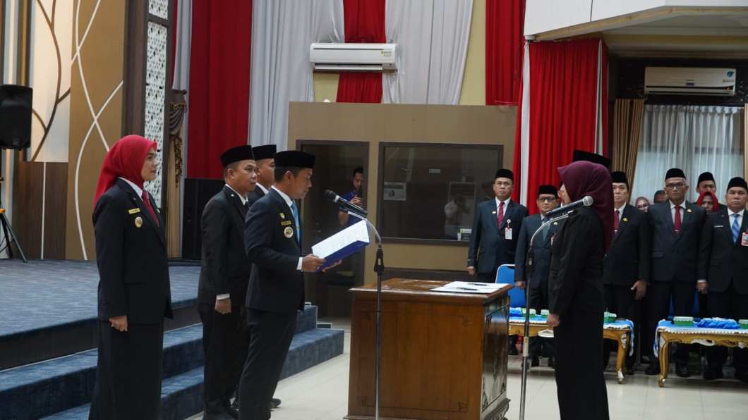 Adapun jumlahnya ada 124 orang yang terdiri eslon III ada 49 orang, eslon IV 46 orang dan 11 orang Pengawas BPKPAD serta 18 orang Fungsional. “Ada pergeseran dan promosi, baik antar Kepala Bidang (Kabid) atauSekretaris, naik ke Camat dan lainnya,” bebernya.