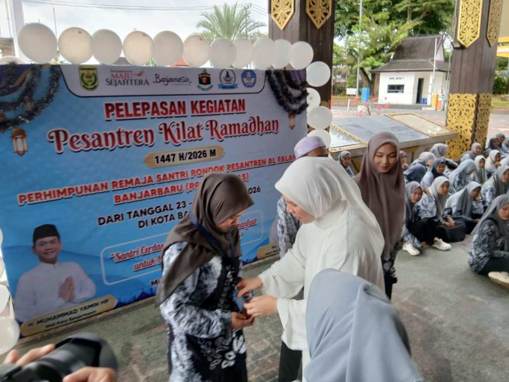 SEPUTARAN.ID, BANJARMASIN – Pelepasan ratusan santri dan santriwati dari Perhimpunan Remaja Santri Pondok Pesantren Al Falah Banjarbaru (PRES AF BMAS) Pesantren Kilat Ramadhan 1447 Hijriyah atau 2026 Masehi digelar, di Lobby Balai Kota Banjarmasin, Minggu (22/2/2026).
