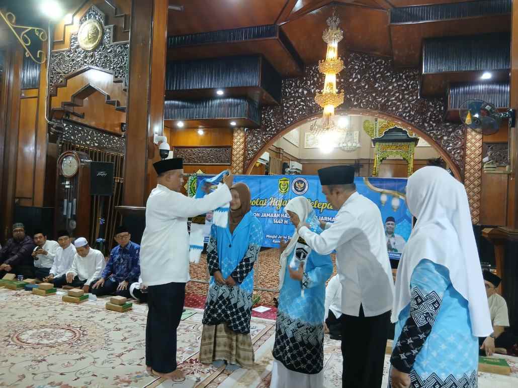 Ratusan CJH itu resmi dilepas yang ditandai salat Hajat dan pemasangaan syal kepada perwakilan Jamaah Termuda dan Tertua, yang berlangsung di Masjid Jami, Sungai Jingah, Banjarmasin,Kamis (16/4/2026).