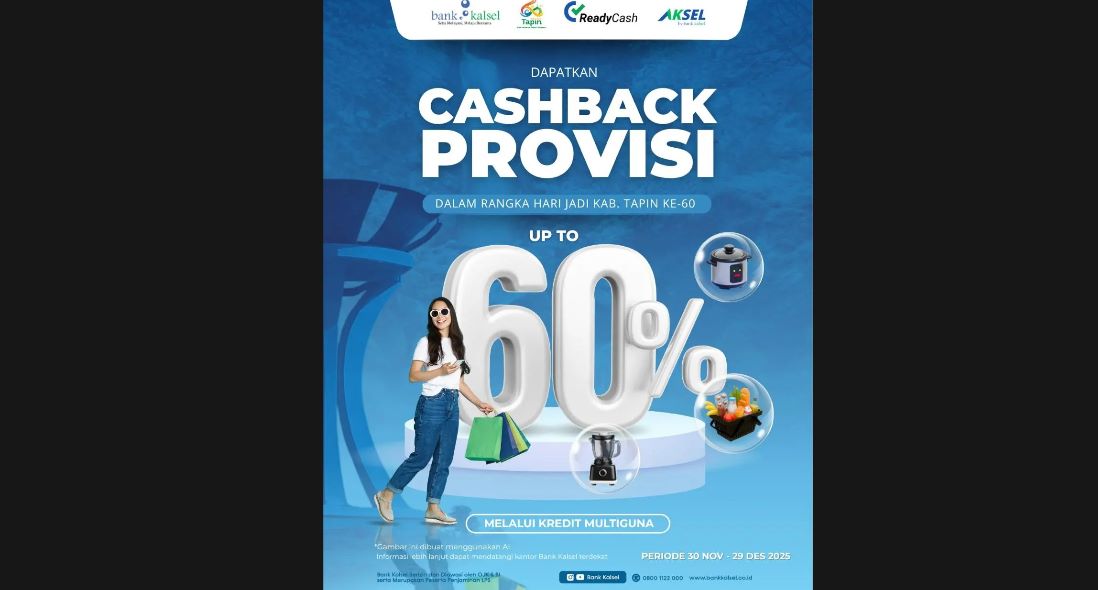 “Harjad Tapin ke-60 adalah momen istimewa bagi masyarakat. Melalui promo Cashback Provisi Kredit Multiguna 60 persen ini, kami ingin memberikan nilai tambah yang nyata, sekaligus memudahkan masyarakat dalam memenuhi berbagai kebutuhan finansial mereka. Bank Kalsel selalu siap mendukung masyarakat Tapin dengan layanan yang kompetitif, mudah, dan aman,” ujar Fauzi.