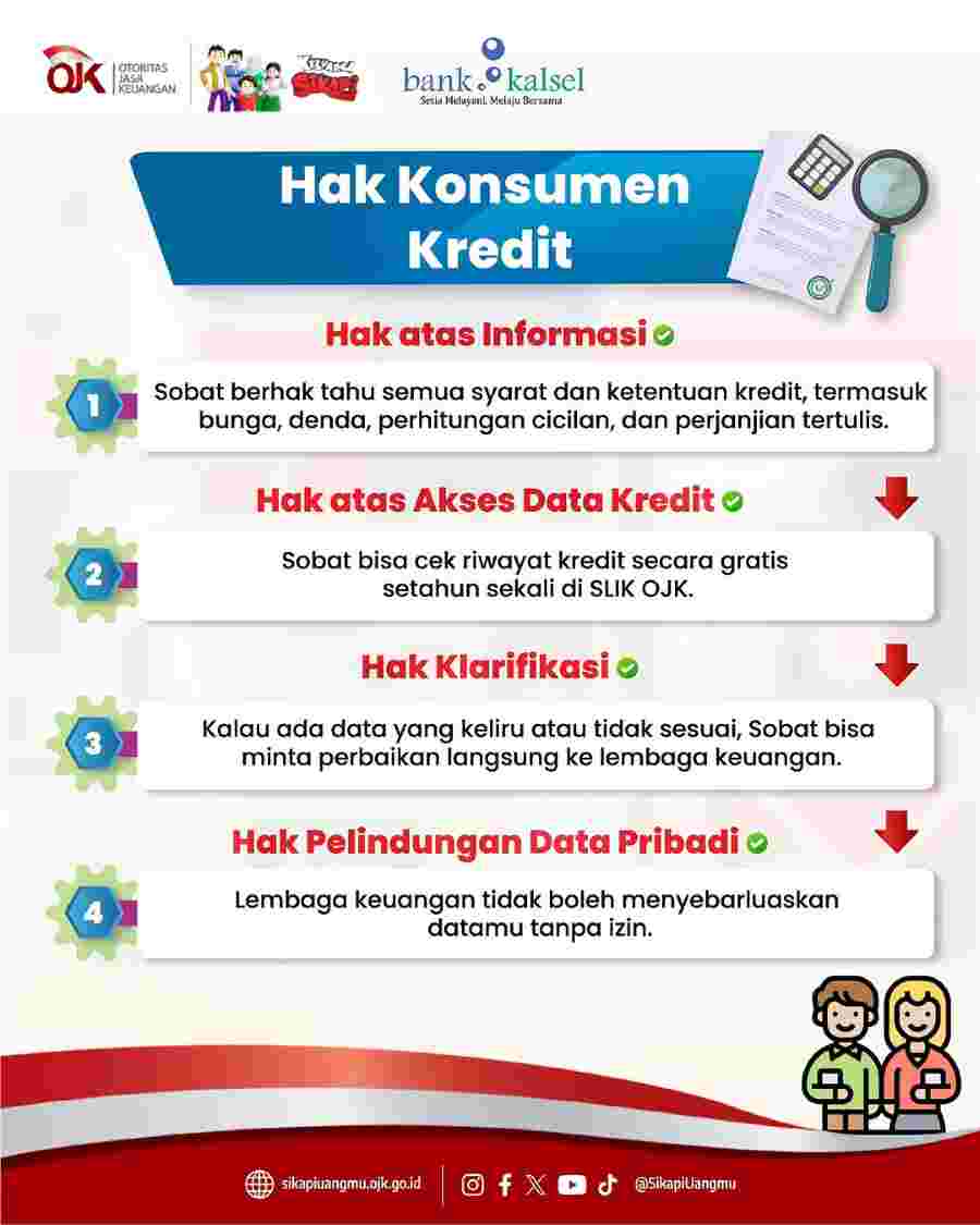 Bank Kalsel mengingatkan skor kredit bukan milik bank, melainkan itu hak kamu sebagai konsumen. Diantara hak Konsumen Kredit adalah hak atas informasi.