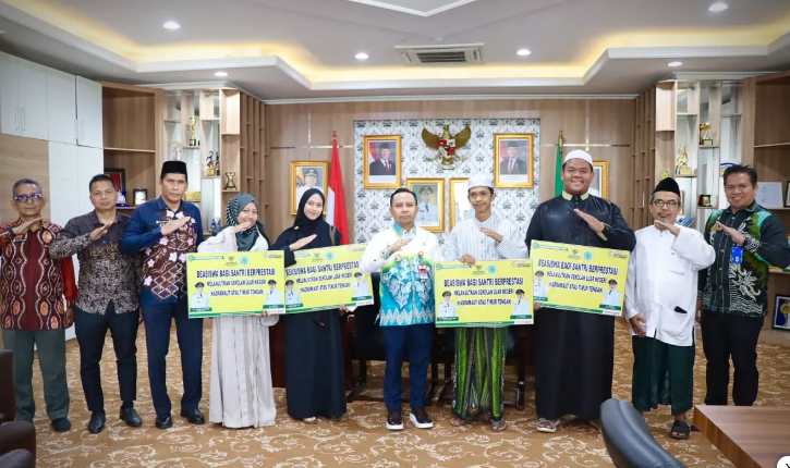 “Alhamdulillah, janji kami untuk memberangkatkan santri berprestasi ke Timur Tengah hari ini terealisasi. Mereka ini yang terbaik dari pondok pesantren masing-masing,” ujar Bupati Yamani, didampingi Kabag Kesra, MUI Tapin, BAZNAS, dan Tenaga Ahli Bupati.