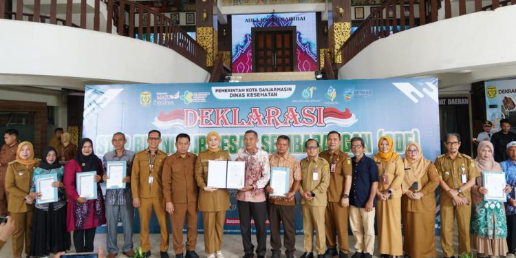 SEPUTARAN.ID, BANJARMASIN – Pemerintah Kota (Pemko) Banjarmasin melalui Dinas Kesehatan (Dinkes) kembali menggelar Deklarasi dam penandatangan ikrar seluruh perwakilan tokoh masyarakat Open Defecation Free (ODF) atau gerakan Stop Buang Air Besar Sembarangan (BABS), bertempat di Lobi Balai Kota Banjarmasin, Selasa (30/12/2025).