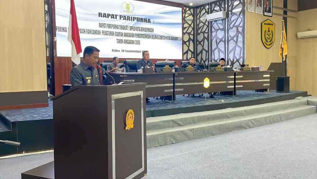 SEPUTARAN.ID, BANJARMASIN – DPRD Banjarmasin menggelar Rapat Paripurna Tingkat I dengan agenda penyampaian Rancangan Peraturan Daerah tentang Anggaran Pendapatan dan Belanja Daerah (RAPBD) Kota Banjarmasin Tahun Anggaran 2026, Rabu (10/9/2025).