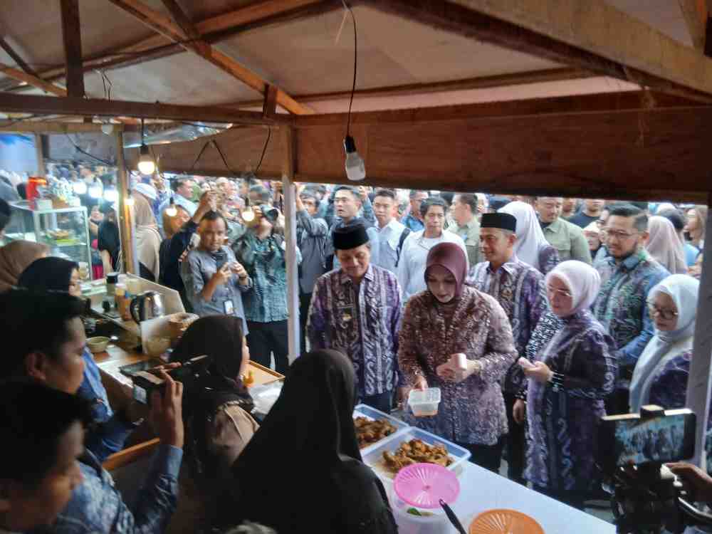 Selepas dibuka, rombongan langsung meninjau sembari bercengkrama hangat dengan para pedagang dan membeli sejumlah jajanan di lapak yang tersedia.