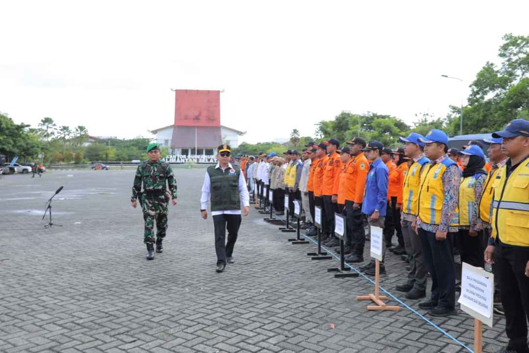 Sekdaprov Kalsel M Syarifuddin mewakili gubernur saat cek kesiapan personel atasi potensi bencana di Kalsel. (foto : Adpim Kalsel)