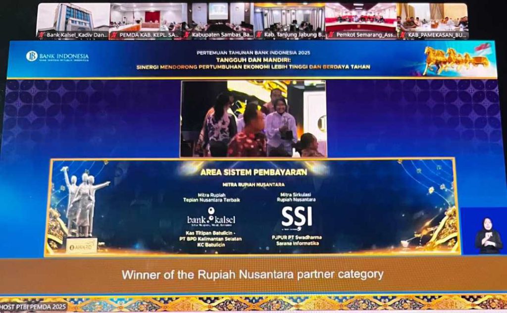SEPUTARAN.ID, BANJARMASIN – Bank Kalsel kembali menorehkan prestasi membanggakan pada ajang Pertemuan Tahunan Bank Indonesia (PTBI) 2025 yang mengusung tema “Tangguh dan Mandiri: Sinergi Mendorong Pertumbuhan Ekonomi Lebih Tinggi dan Berdaya Tahan” yang diselenggarakan serentak di seluruh Indonesia melalui siaran langsung, dengan acara utama terpusat di Kantor Pusat Bank Indonesia (BI) Jakarta.