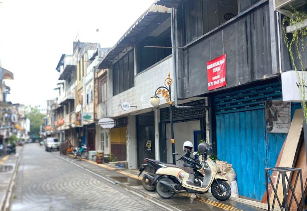 Deretan kedai kopi dan tempat makan yang sebelumnya tampak ramai pengunjung kini mulai sepi. Bahkan, beberapa di antaranya tutup dan memasang spanduk dijual serta disewakan.