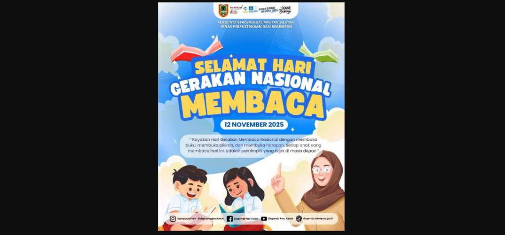 “Rayakan Hari Gerakan Membaca Nasional dengan membuka buku, membuka pikiran, dan membuka harapan. Setiap anak yang membaca hari ini, adalah pemimpin yang bijak di masa depan,” ungkap Kepala Dispersip Kalsel Sri Mawarni, melalui akun resmi Diseprsip Kalsel, Rabu (12/11/2025).