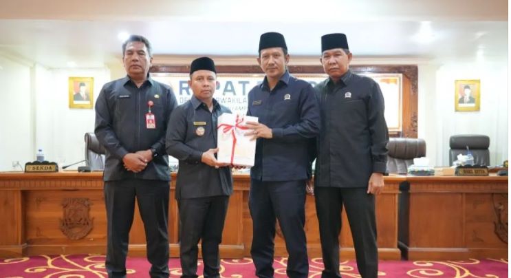 Bupati Tapin H Yamani saat menyerahkan dokumen Rancangan APBD 2026 kepada unsur pimpinan DPRD Tapin. (foto : istimewa)