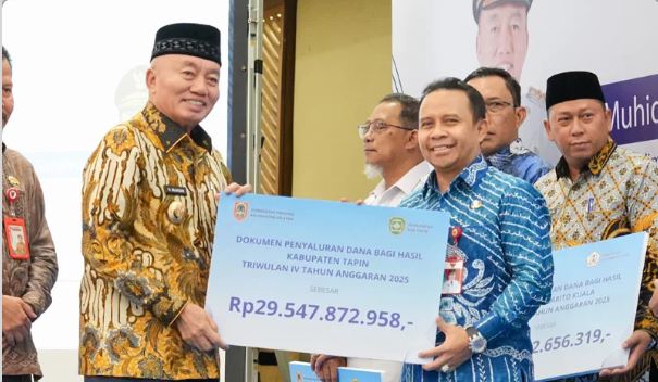 Pemerintah Kabupaten (Pemkab) Tapin menerima dana bagi hasil pajak daerah Triwulan IV pada 2025 sebesar Rp29,5 miliar dari Pemerintah Provinsi (Pemprov) Kalsel. Dan penyerahan dilakukan bertepatan dengan Rapat Umum Pemegang Saham (RUPS) Tahunan Tahun Buku 2025 serta RUPS Luar Biasa Tahun 2026 Bank Kalsel.