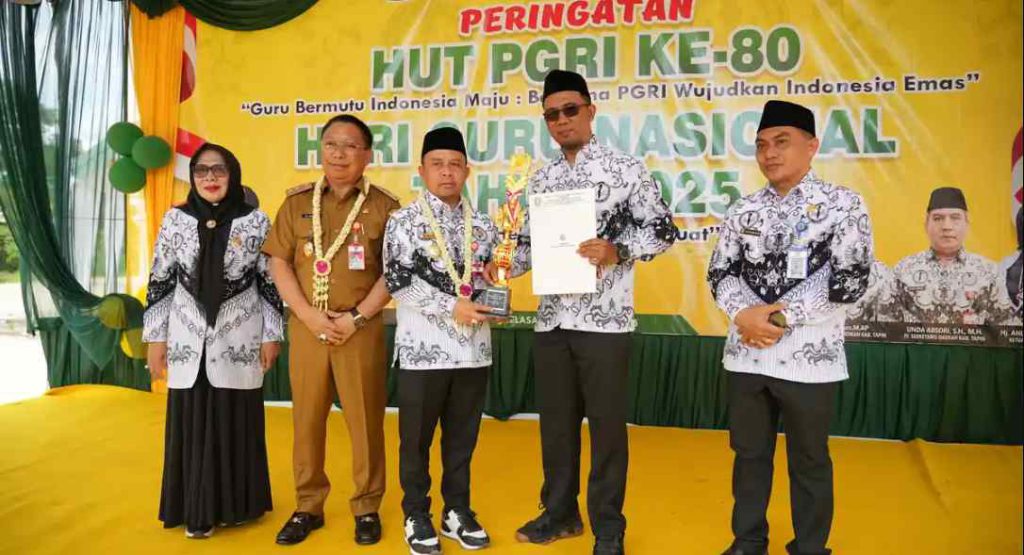 SEPUTARAN.ID, RANTAU – Bupati Tapin H Yamani menghadiri peringatan HUT ke-60 PGRI dan Hari Guru Nasional 2025 yang dipusatkan di Ruang Terbuka Publik (RTP) Rantau Baru, Kota Rantau, Selasa (25/11/2025).