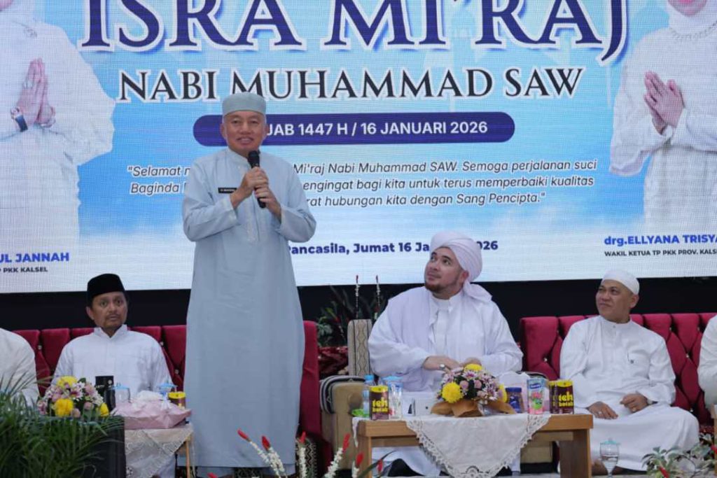 SEPUTARAN.ID, BANJARMASIN – Pemerintah Provinsi (Pemprov) Kalimantan Selatan (Kalsel) menggelar Peringatan Isra Mi’raj Nabi Muhammad SAW Tahun 1447 H / 2026 M bertempat di Gedung Mahligai Pancasila Banjarmasin, Jumat (16/1/2026) pagi.