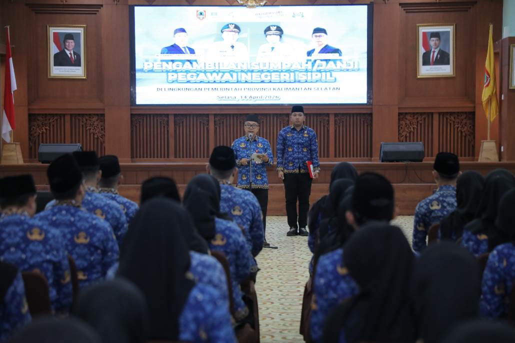 SEPUTARAN.ID, BANJARBARU – Sebanyak 129 aparatur resmi mengikrarkan sumpah/janji sebagai Aparatur Sipil Negara (ASN) di lingkungan Pemerintah Provinsi (Pemprov) Kalimantan Selatan (Kalsel) di Gedung Idham Chalid Banjarbaru, Selasa (14/4/2026) siang.