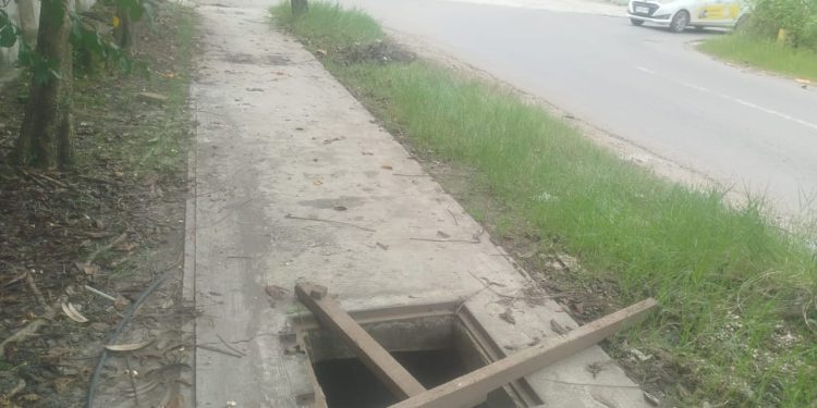 Sedikitnya ada beberapa titik lubang drainase yang dibiarkan terbuka tanpa pengaman memadai.